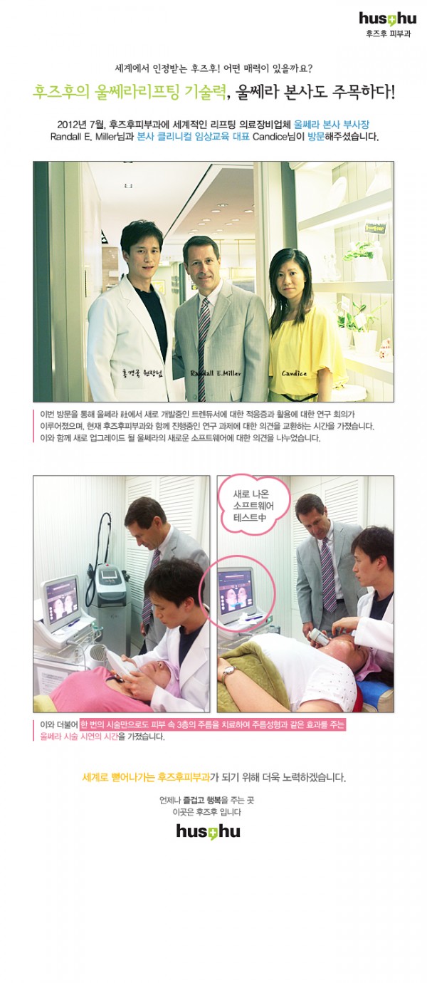 후즈후의 울쎄라 리프팅 기술력, 울쎄라 본사도 주목하다! 페이지 정보 작성자 관리자 작성일12-07-13 15:41 조회2,633회 댓글0건 관련링크 이전글 수정 삭제 목록 본문 댓글목록 등록된 댓글이 없습니다. 이전글 수정 삭제 목록